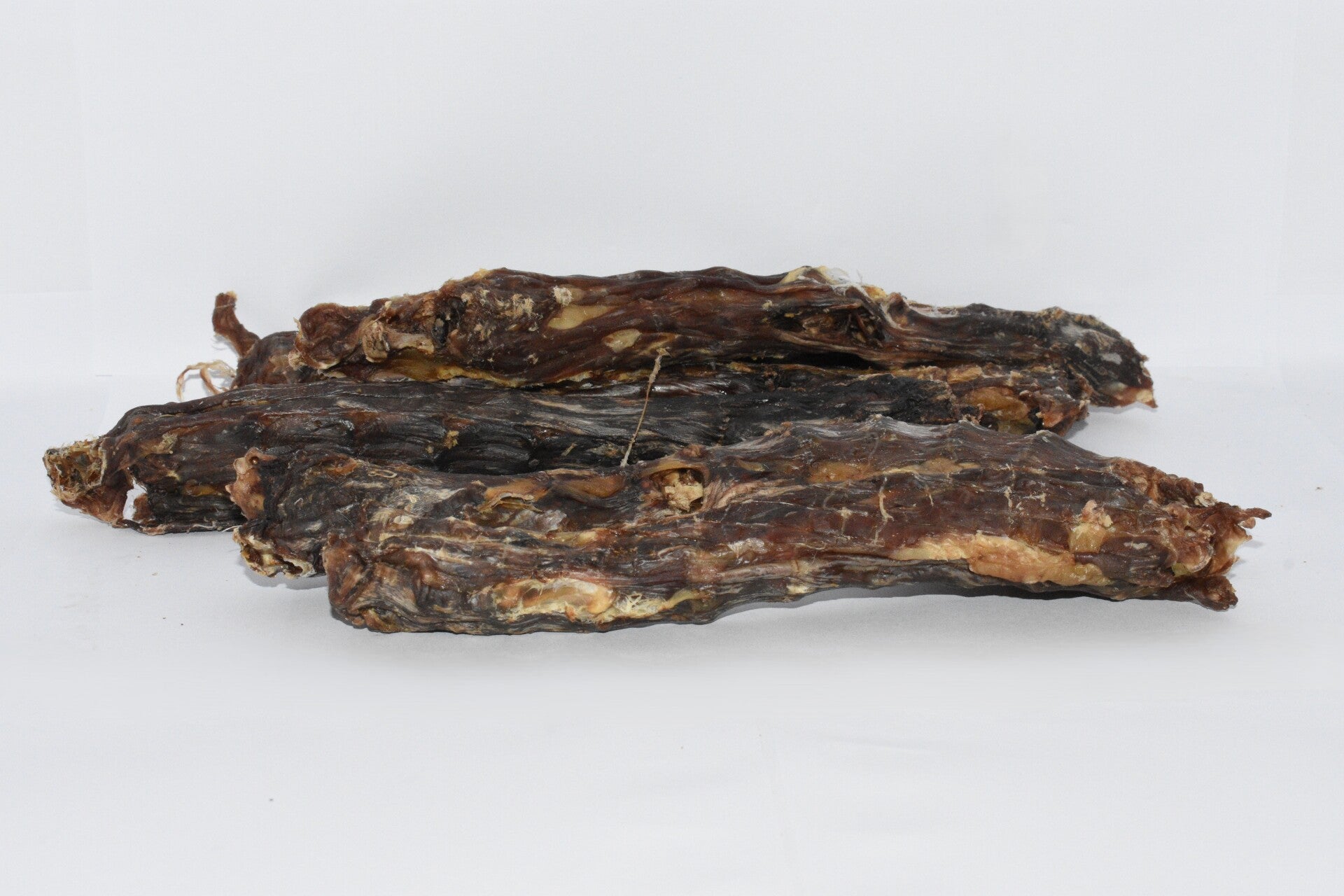 Gedroogde eendennekken zijn een 100% natuurlijke kauwsnack met een knapperige structuur. Ondersteunt tanden en kaken.