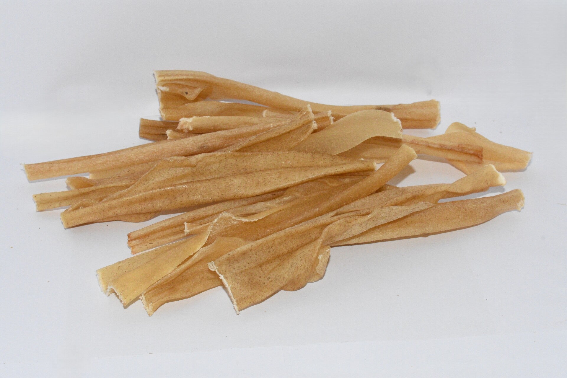 Gedroogde lamskophuid is een taaie kauwsnack voor langdurig kauwplezier.